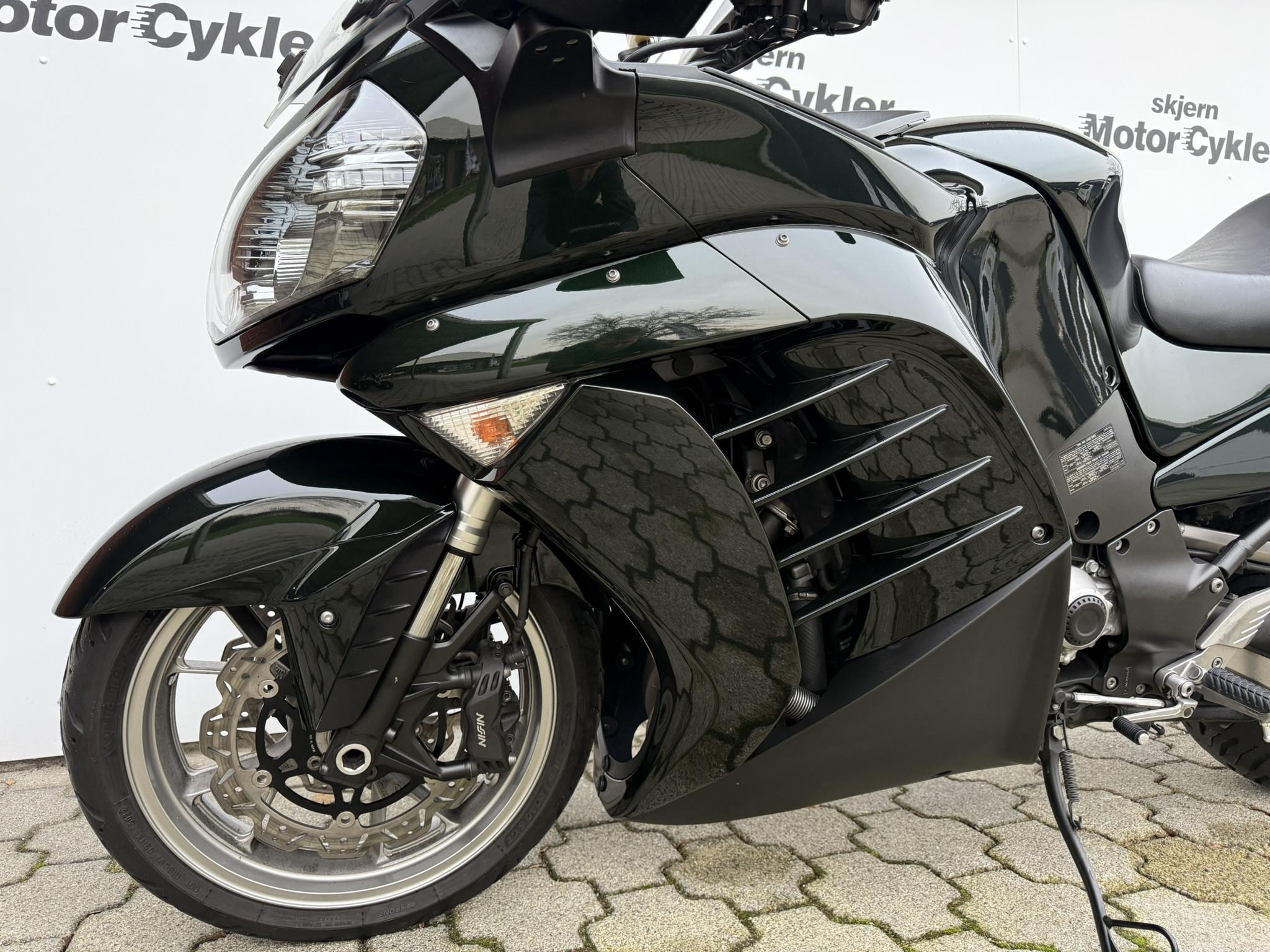 Kawasaki GTR1400 årgang 2011 er en rendyrket touringmotorcykel til dig, der ønsker komfort, kraft og avanceret udstyr samlet i én gennemført pakke. Her får du en solid og veludstyret maskine, skabt til lange stræk og store oplevelser på landevejen.