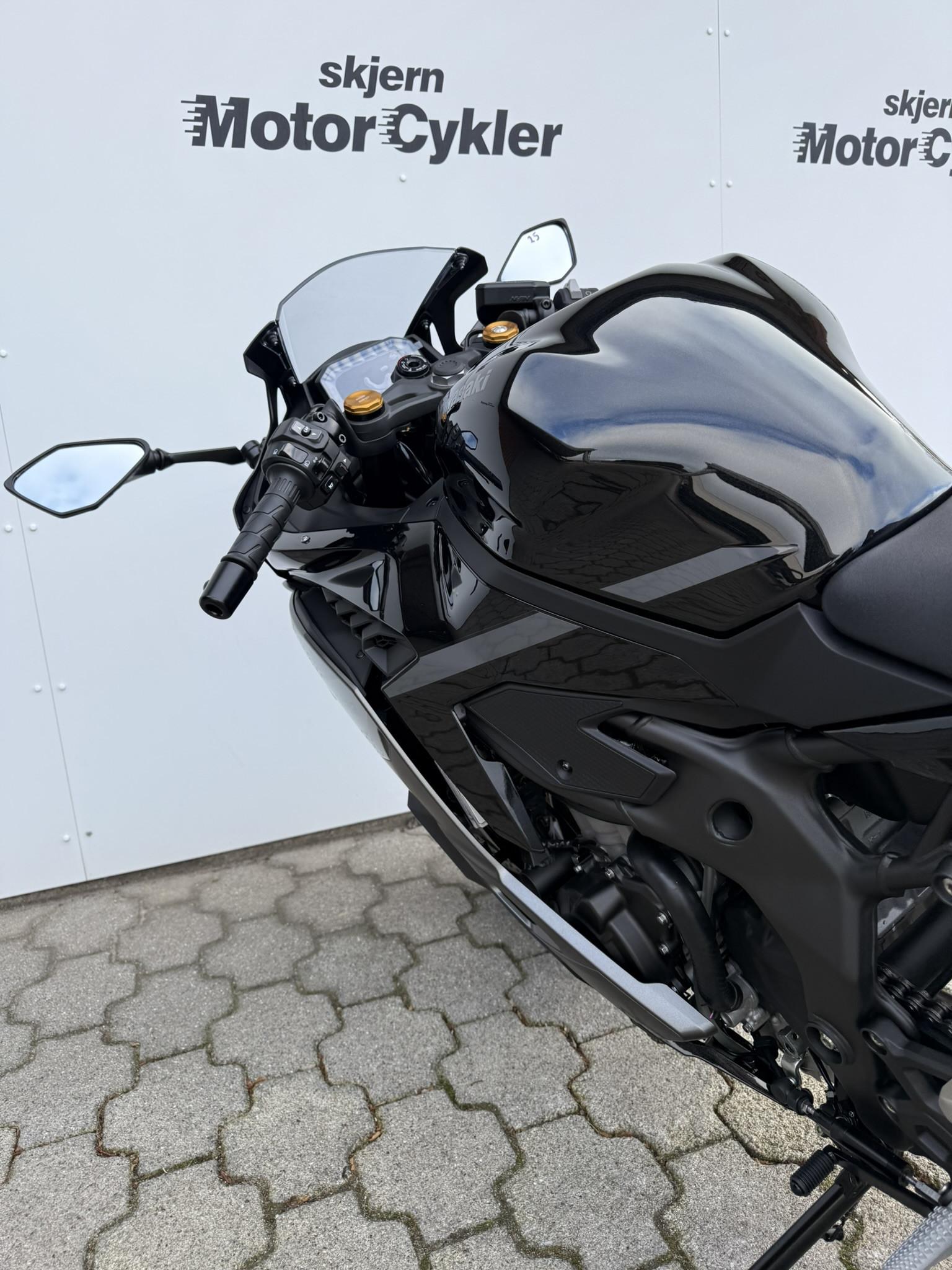 Kawasaki ZX4RR 2026 // Lime Green (GN1) // , ABS bremser, TCS (traction control), wheelie control, kørecomputer, gearindikator, fuldkåbe, indsprøjtning, LED baglygte, LED forlygte, A2 kørekort muligt, quickshift/blip Kan også leveres uden afgift, klar til trackdays på racerbanerne. Nu er den her! Super Sport maskinen der har været et savnet medlem af klassen siden starten af 90’erne.Som den eneste supersport model i 400 cc segmentet, med en firecylindret rækkemotor, er dette en klasse for sig. 80 hk med fuld RAM air til en opgivet kørerklar vægt på 189 kg