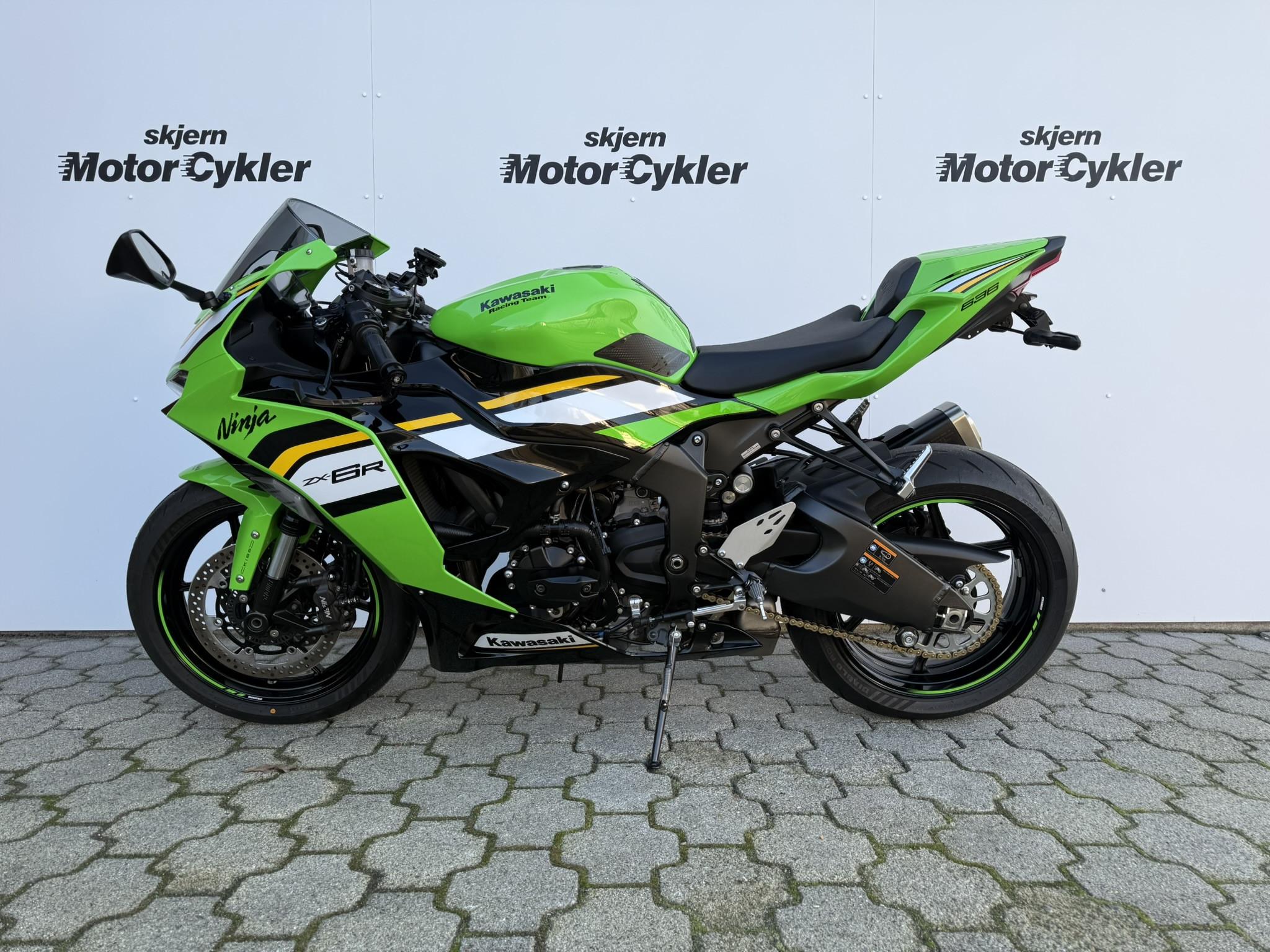 Ninja ZX-6R har en fuldkåbe med tonet kåbeglas, LED-for- og baglygte, quickshifter, gearindikator, traction- og wheelie control, samt corner-ABS for maksimal sikkerhed og kontrol. Komfort og funktionalitet øges med Pillion seat cover, Quadlock trådløs opladning, crashpads, brake og clutch guard og anden nummerpladeholder.