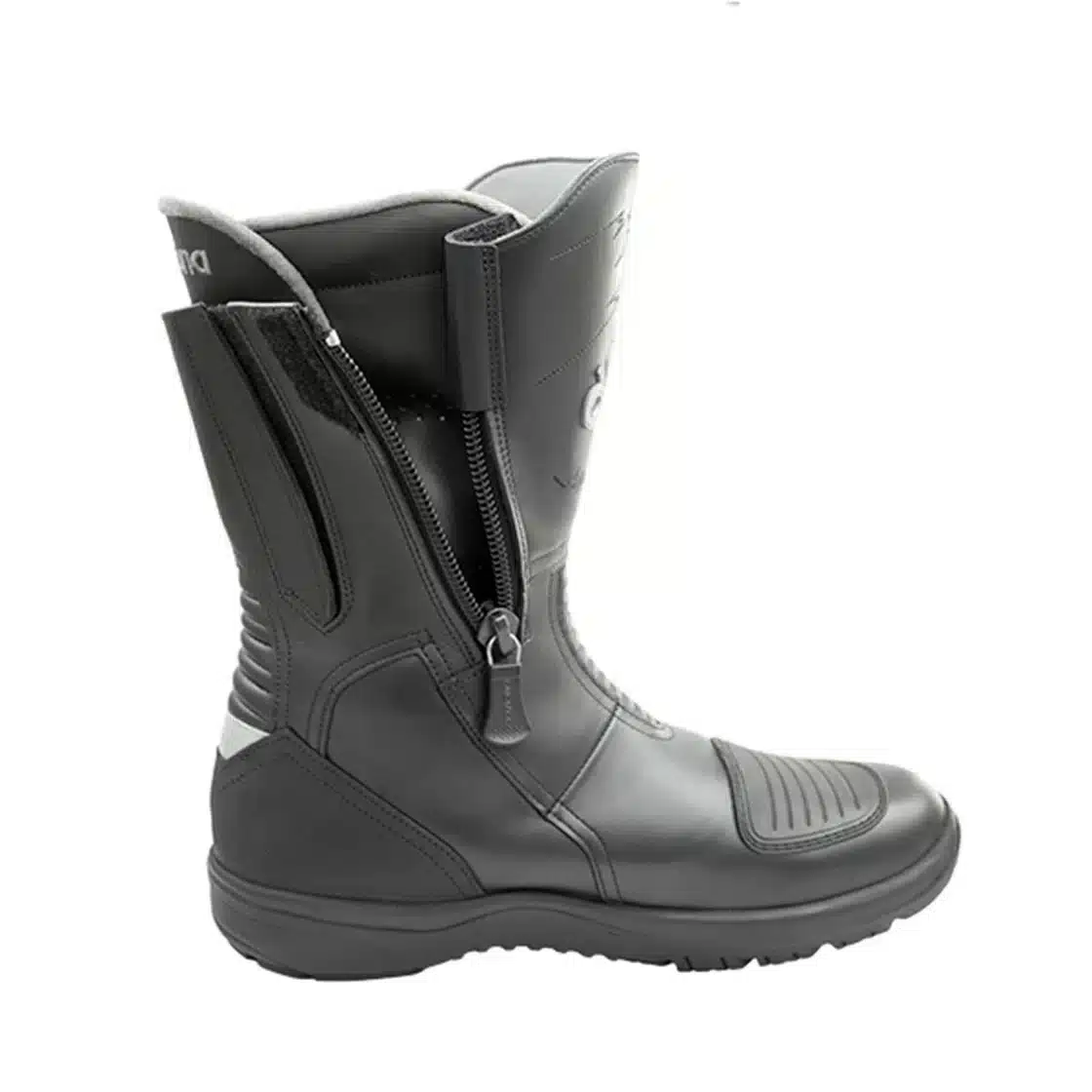 Støvlen er designet med justerbar velcro ved læggen og lynlås på begge sider for nem af- og påtagning.